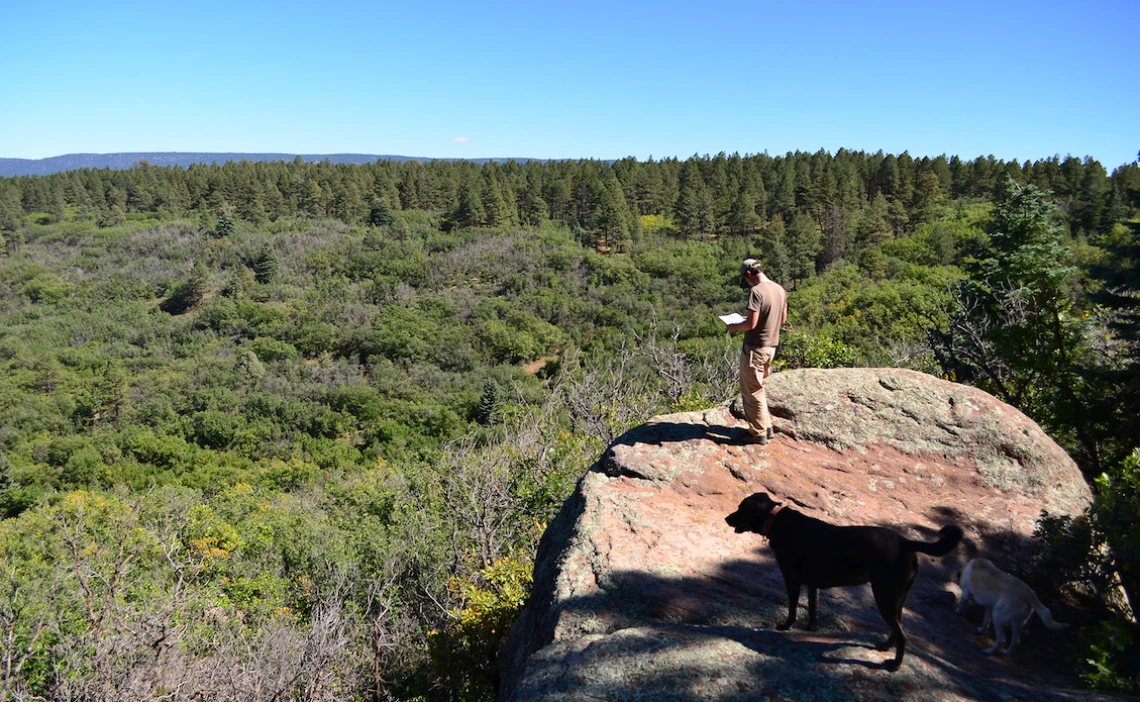 This patch of oak shrub surrounded by forest is the result of an 1899 forest fire in northern New Mexico. Researchers suggest such changes from forest to shrubby, hard-to-walk-through vegetation will become more common as global warming continues.